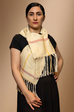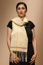 Soie Blanche : Apportant une douceur exquise et une brillance délicate, la soie blanche confère à cette écharpe une allure élégante et fluide.