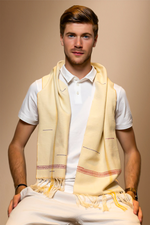 Soie Dorée : Des touches de soie dorée ajoutent une note de luxe et d'éclat, transformant cette écharpe en un accessoire indispensable pour toute garde-robe sophistiquée.