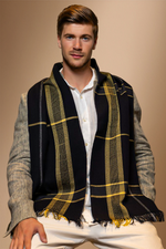 Découvrez Obsidiaura, l’écharpe qui allie la profondeur mystérieuse de la laine noire à l’éclat raffiné de la soie dorée. Conçue pour ceux qui apprécient l'élégance subtile et le luxe, Obsidiaura est un accessoire qui transforme chaque tenue en une déclaration de style sophistiqué.